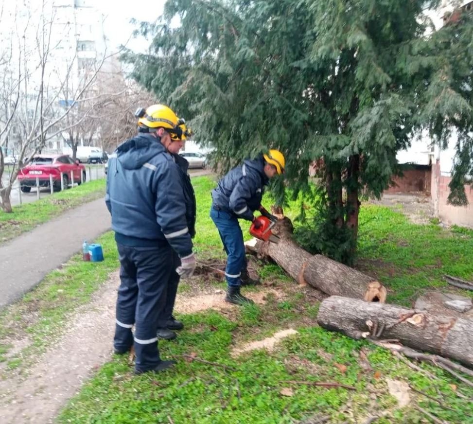 "Получаем информацию от краснодарцев об упавших деревьях в разных частях города. Муниципальные спасатели оперативно выезжают по адресам, где распиливают деревья, освобождая проезжие и пешеходные части дорог", — сказано в сообщении.