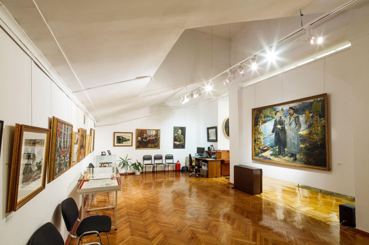 Музей-мастерская народного художника СССР Д.А. НалбандянаК этому мастеру укоренилось отношение как к одному из самых ярких представителей официального искусства советской эпохи, искусства социалистического реализма. Его называли "первой кистью Политбюро", он был единственный, кто писал портрет "вождя всех народов" с натуры, ему заказывали портреты зарубежные политические лидеры. Многие произведения Налбандяна, посвященные отображению исторических событий нашей страны.