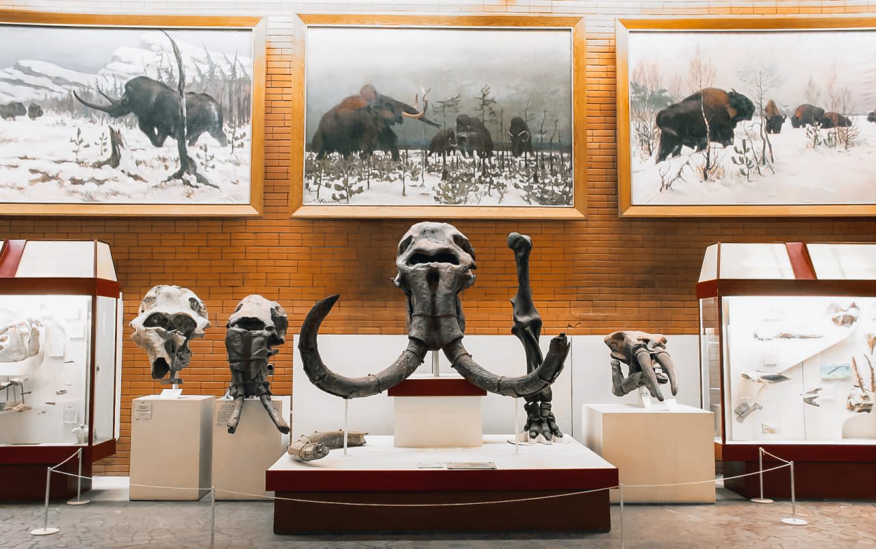 Во зале посетителей встречает скелет мамонта, который был найден в 1842 году русским промышленником А.И. Трофимовым на северо-востоке Гыданского полуострова в Сибири. Зал докембрия и позднего палеозоя знакомит с уникальными плитами с отпечатками и следами ползанья древнейших многоклеточных мягкотелых организмов, возраст которых более 550 млн. лет.