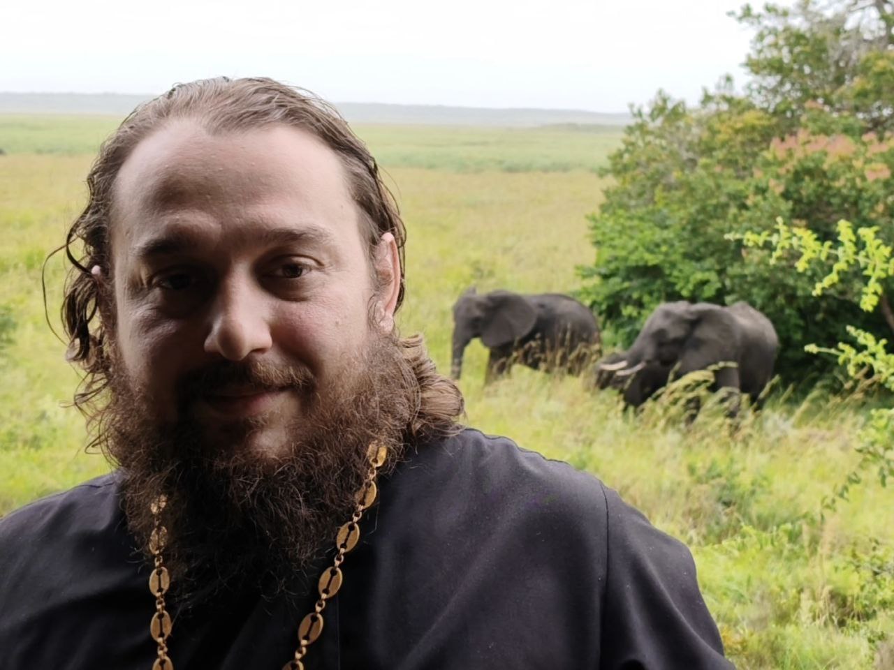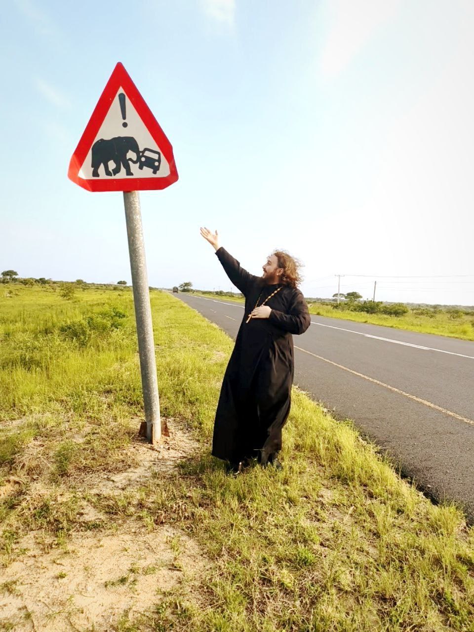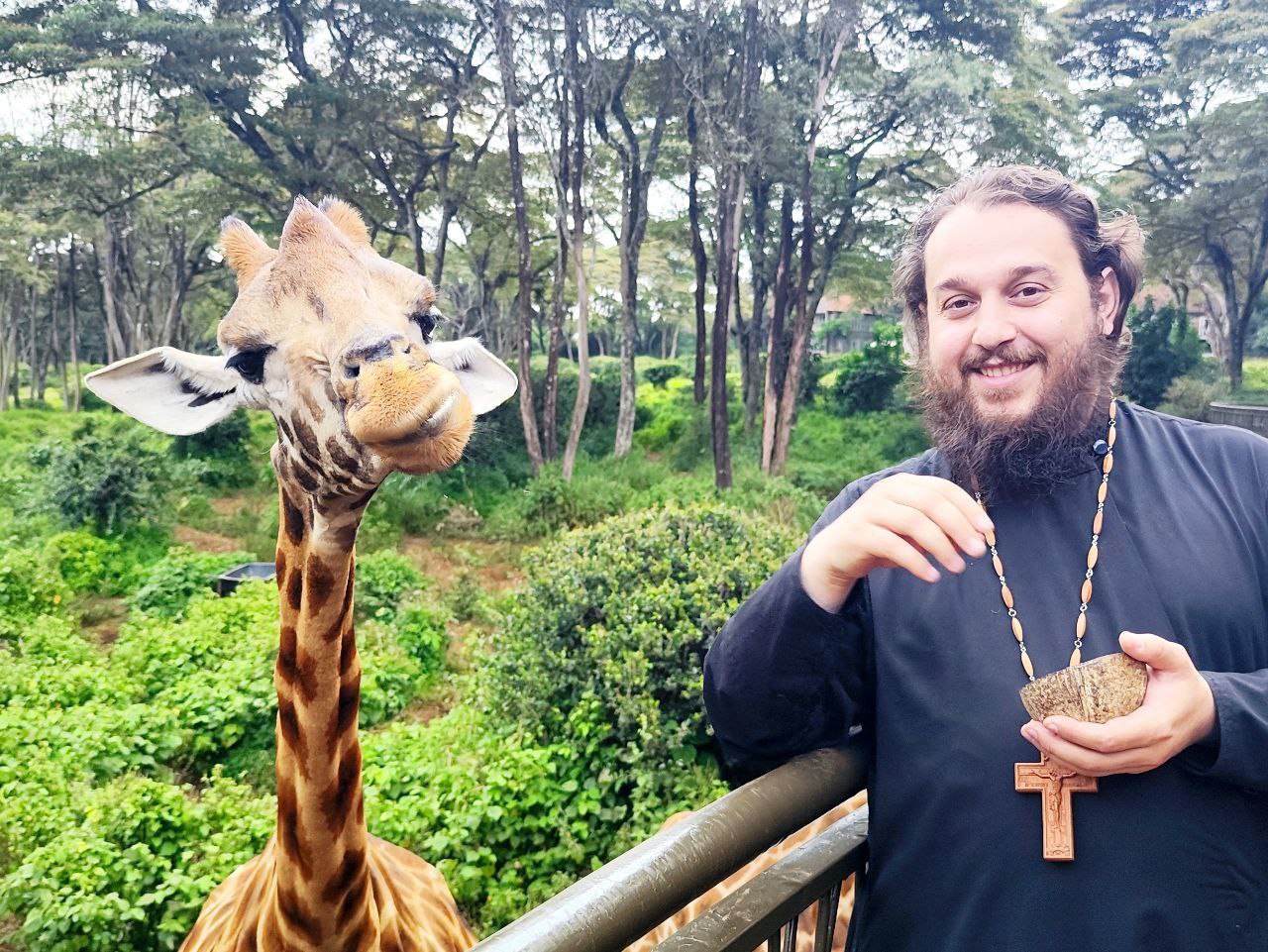 Сейчас батюшка в Мозамбике. Рассказывает местным о Православии и крестит африканцев. Летом был в Кении. Помогал местной школе провести свет, построить туалеты и вообще участвовал в обустройстве православной жизни.