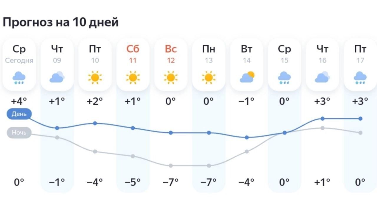 В пятницу, 10 октября, в дневное время будет уже от 0 до +5 градусов, а в ночное — от -5 до 0 градусов. Ветер тоже немного усилится: юго-восточный, до 4-12 м/с.