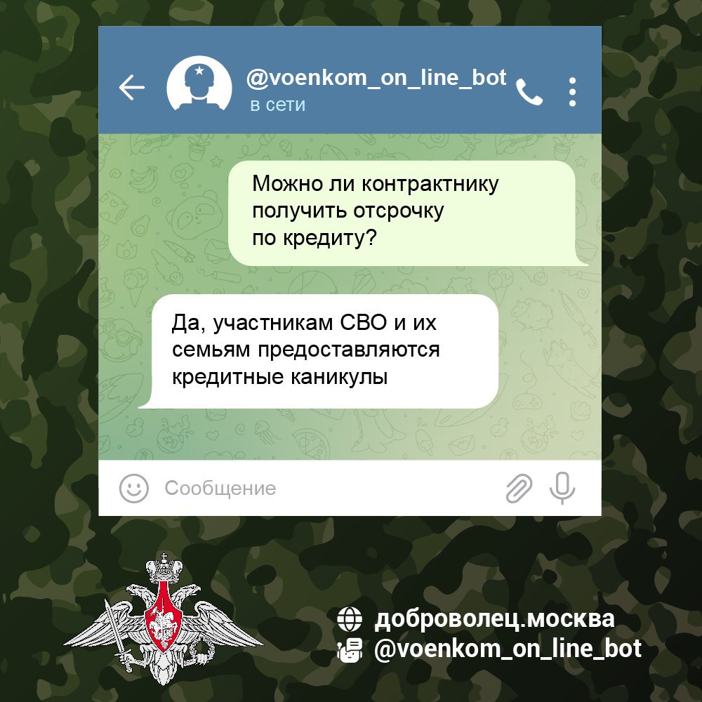 ℹ️Члены семей контрактников имеют право оформить кредитные каникулы по своим кредитам и займам, но они должны были быть оформлены до дня подписания контракта.