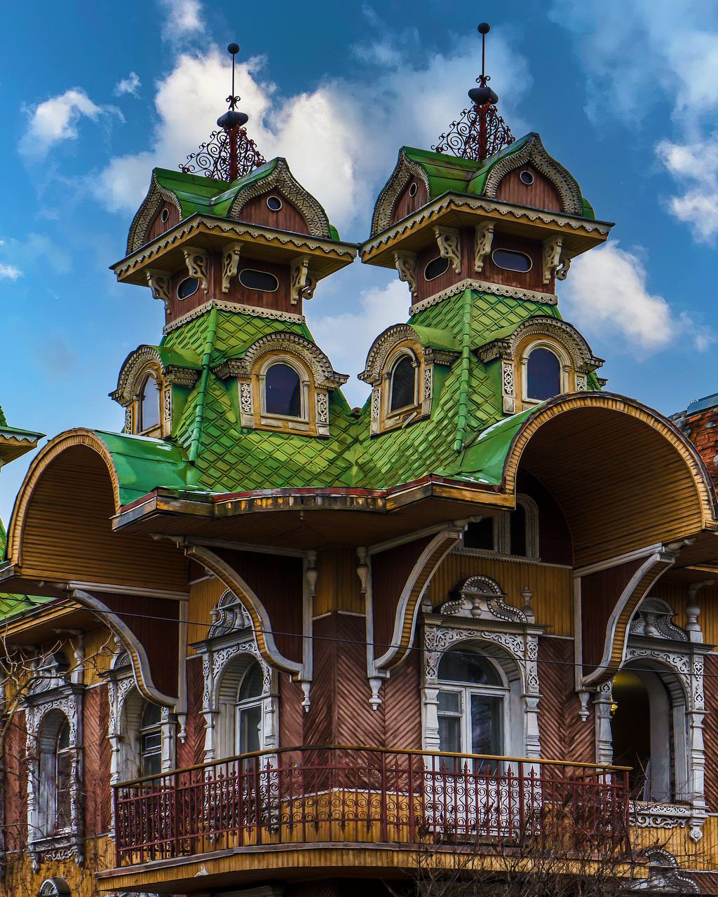 Фото 5-6: В советское время терем купца Гордеева в Рыбинске отдали под коммуналки, из-за чего он сильно обветшал и пришел в аварийное состояние. Тогда команда местных художников приняла решение построить дом заново, сохранив его исторический облик, но при этом внутри сделать несколько просторных квартир, соответствующих современным представлениям о комфорте. Задумка удалась, и сейчас здесь живет творческая интеллигенция города.