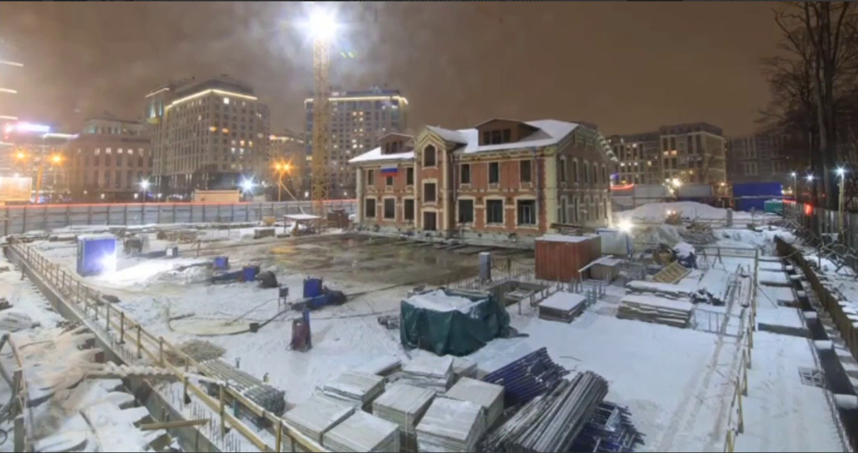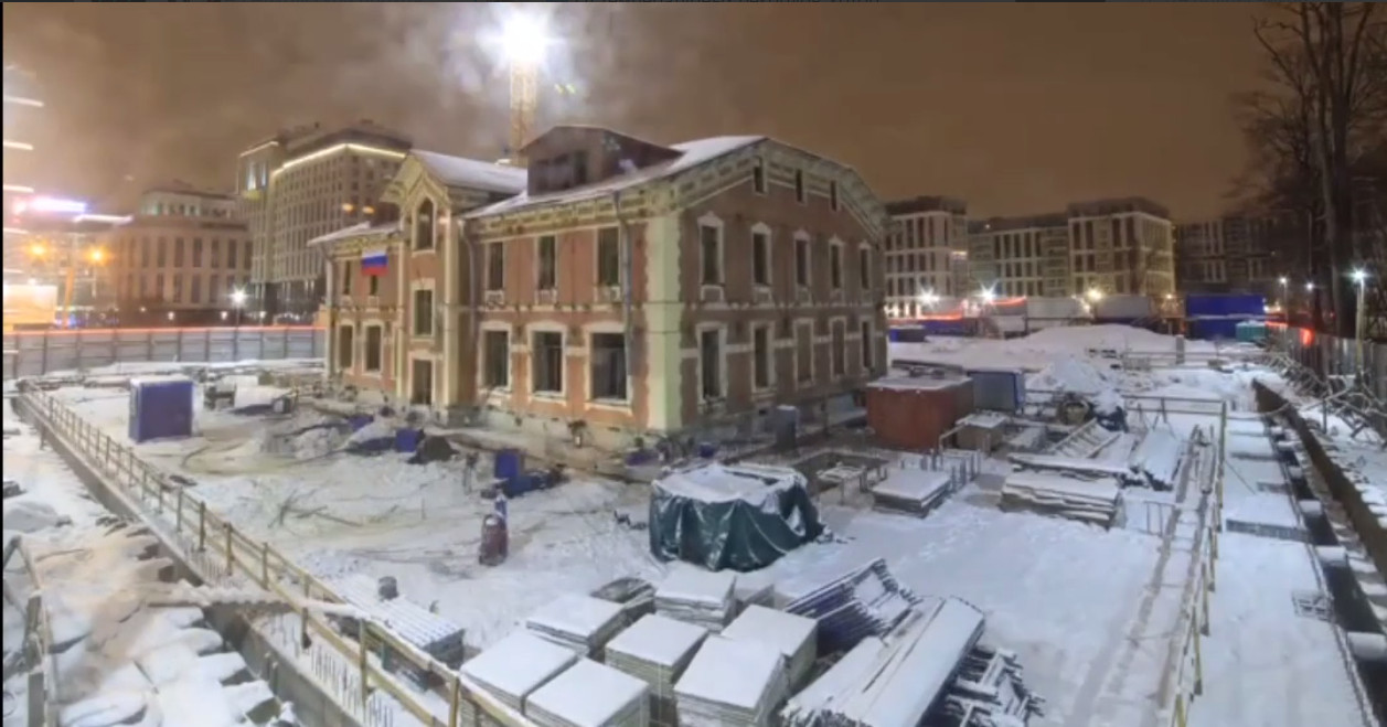 В проект инвестировали 1,3 млрд рублей. По освещению и расположению контейнера видно и как продвинули дом, и то, что это заняло весь не только световой день, но и вечер прихватило. Оказывается можно и не сносить!