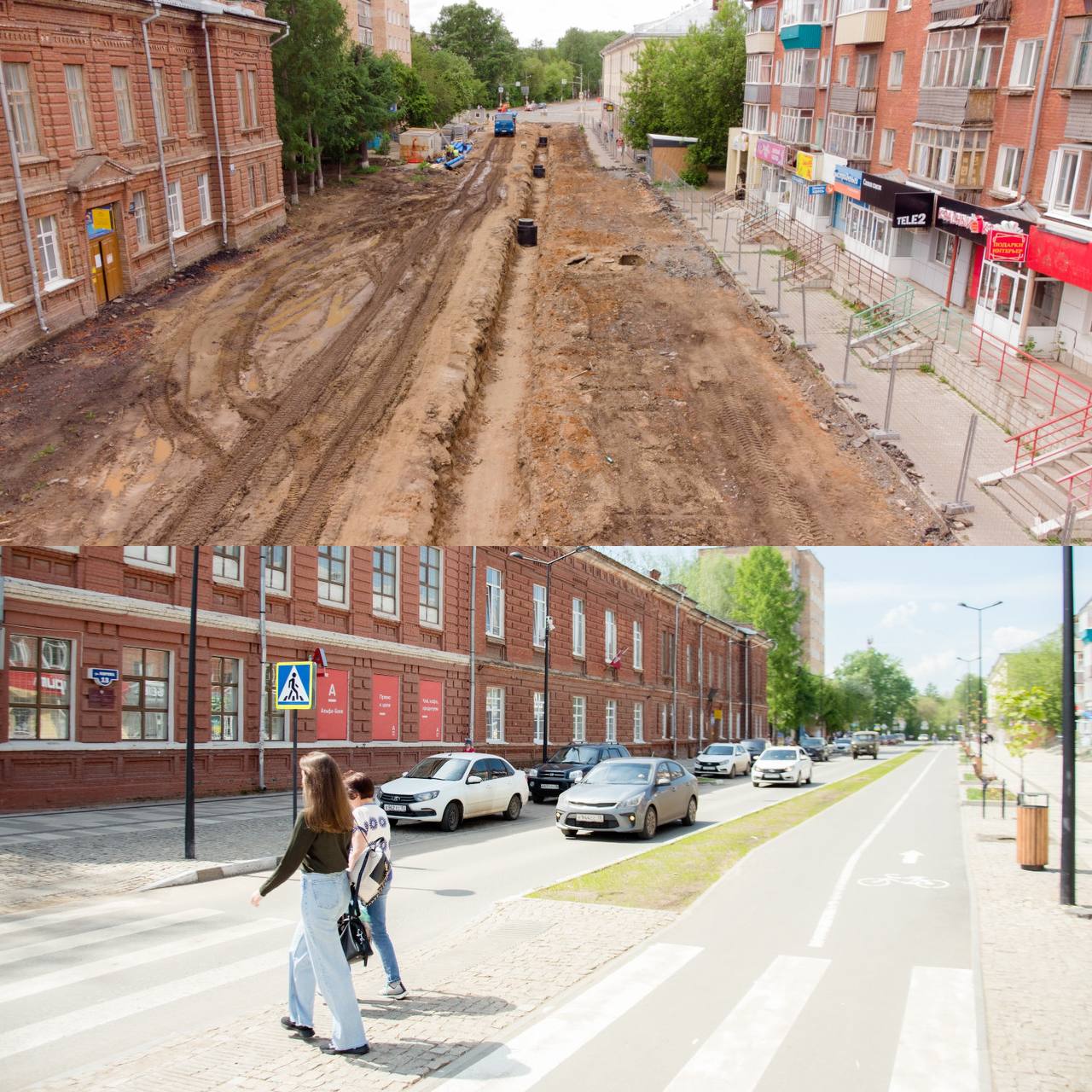 Улица Кирова в городе Глазове, работы 2021 года.