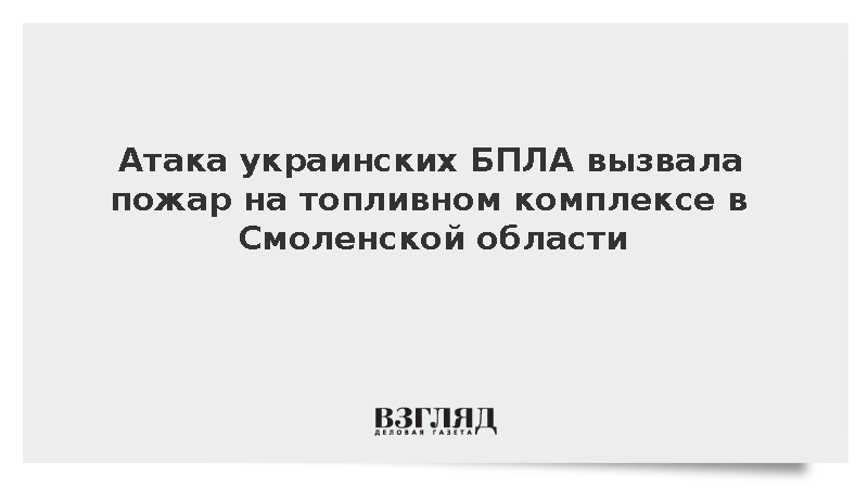 Как сообщает РИА «Новости», атака украинских беспилотных летательных аппаратов привела к возникновению пожара на объекте топливно-энергетического комплекса в Ярцевском районе Смоленской области. Глава района Роман Захаров в своем Telegram-канале подтвердил факт атаки и сообщил о возгораниях.