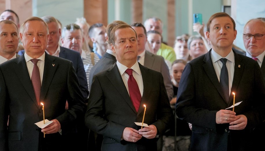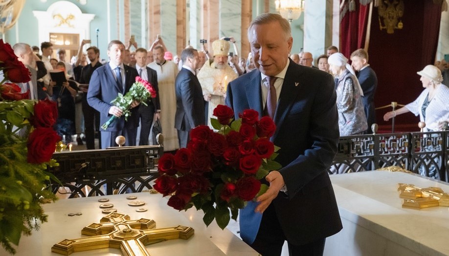 Петербург отметил своё 321-летие. По случаю праздника губернатор Александр Беглов, зампред Совета безопасности РФ Дмитрий Медведев и первый зампред Совета Федерации РФ Андрей Турчак возложили цветы к могиле основателя города Петра I в Петропавловском соборе Петропавловской крепости.