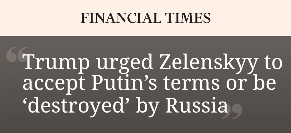 СОЛОВЬЁВ5 часов назадВидео по теме ФОТО Financial Times сообщает, что на напряжённой встрече в Вашингтоне Трамп призвал Зеленского принять условия России, предупредив, что в противном случае киевский режим может быть «уничтожен».🇷🇺 Соловьёв в Max | ✍ Соловьёв в Telegram Темы и тегиВашингтонПолитикаДональд Трамп Трамп Владимир Путин Зеленский Путин Владимир Зеленский оружие встреча