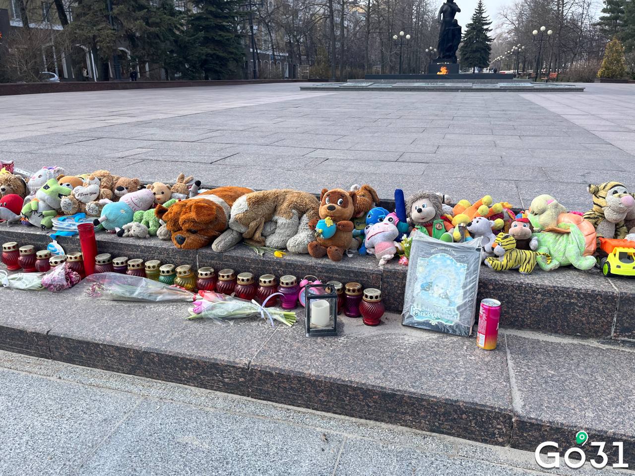 Еще немного Белгорода. В моменты тишины белгородцы несут игрушки на Соборную площадь, в память о погибших во время обстрелов детях.