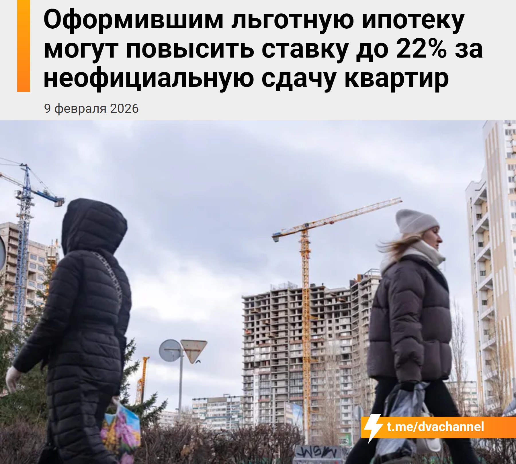 ⚡️Владельцам льготных ипотек — семейных или айтишных — могут задрать ставку до стандартных 22%, если те решат сдавать жильё вчёрную