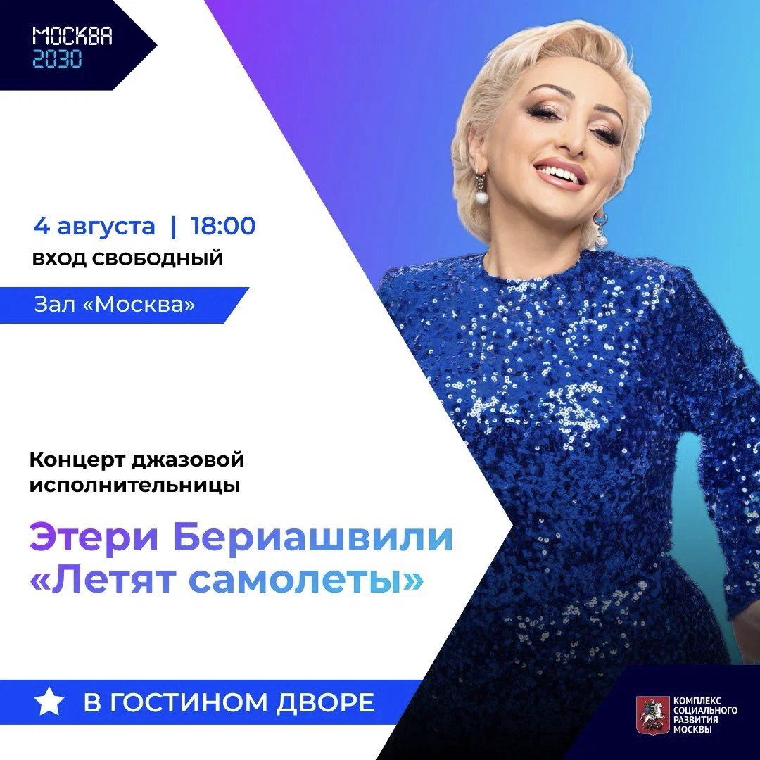 🎷4 августа в Москве выступит певица Этери Бериашвили