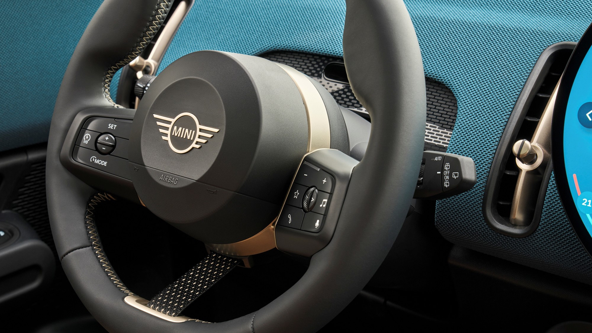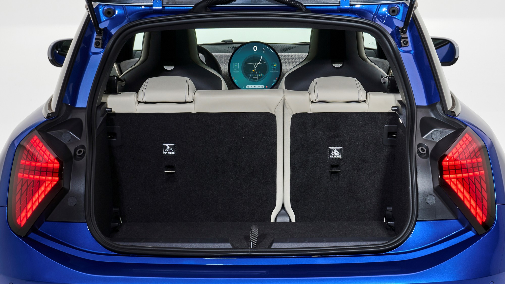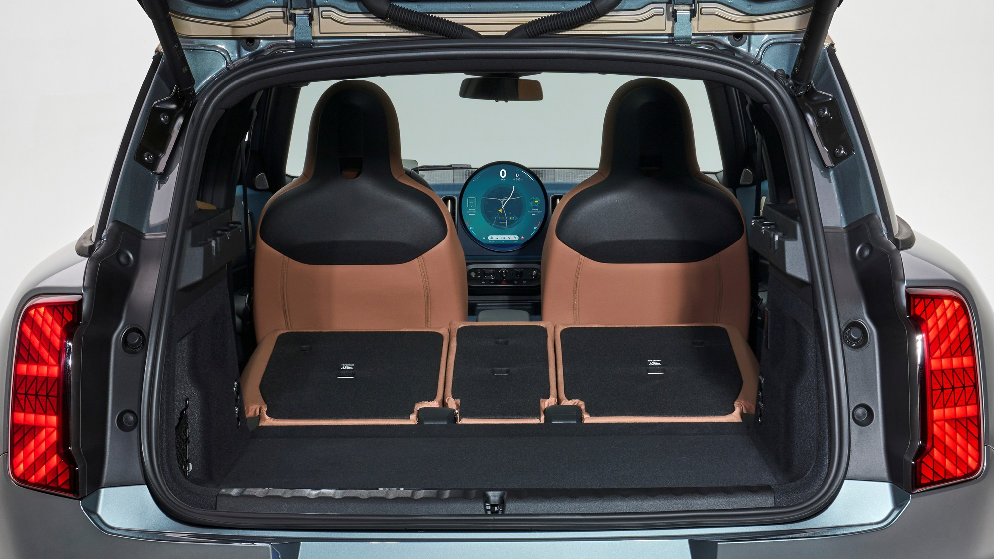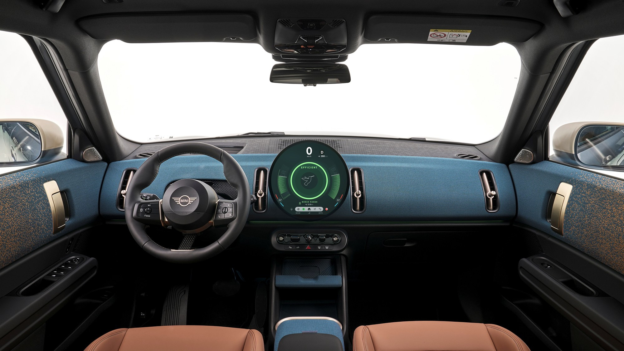 Под круглый экран разработана собственная операционная система Mini 9 на движке Android с виртуальным ассистентом Спайком и несколькими вариантами «обоев», в том числе в стиле классического хронографа. Под мультимедийным экраном есть небольшой пульт с физическими клавишами, на него вынесены селекторы ездовых и дизайнерских режимов, флажок запуска силовой установки, кнопка стояночного тормоза и «крутилка» громкости аудиосистемы.