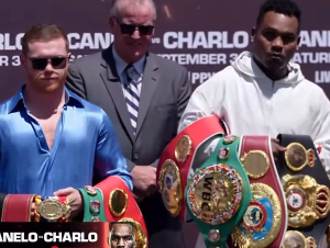Абсолютные чемпионы суперсреднего и первого среднего дивизионов, соответственно мексиканец Канело Альварес (59-2-2, 39 КО) и американец Джермелл Чарло (35-1-1, 19 КО), следом за Нью-Йорком провели пресс-конференцию и в Лос-Анджелесе (США).