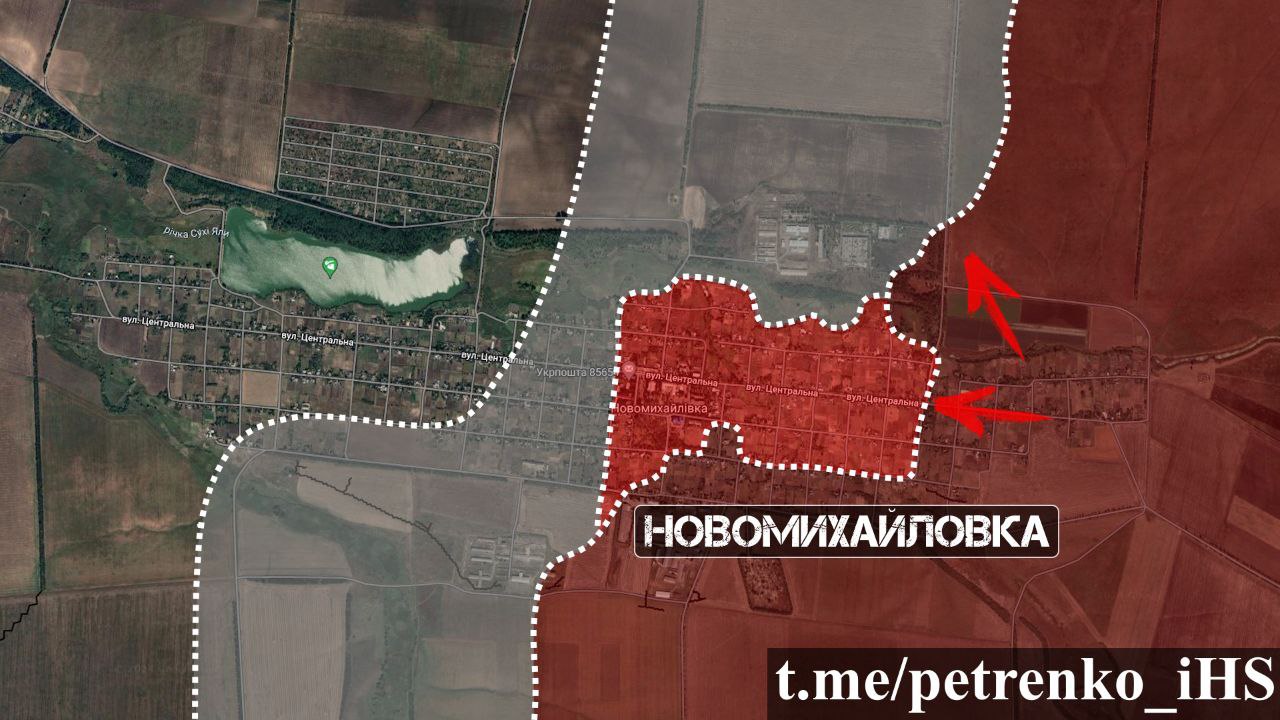 На утро противник признает потерю существенной части Новомихайловки и продвижение ВС РФ к западной части села.