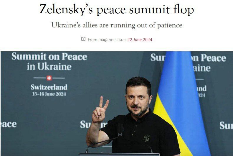 Киев возлагал большие надежды на так называемый мирный саммит по Украине в Швейцарии. Зеленский хотел продемонстрировать, как весь мир его поддерживает, а Россия остаётся в изоляции. Однако результат вышел совершенно обратный, констатирует Spectator. Китай отказался от участия. Другие ключевые страны отказались подписать итоговое коммюнике даже в сильно отредактированном смягчённом варианте.