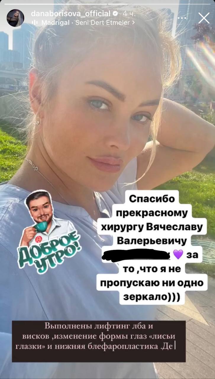 Дана Борисова сняла все бинты и показала, как выглядит после того, как стала обладательницей популярных «лисьих глазок».