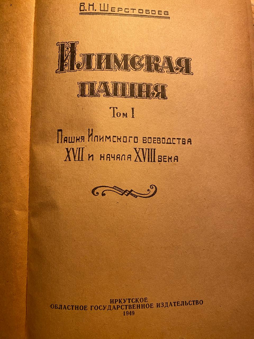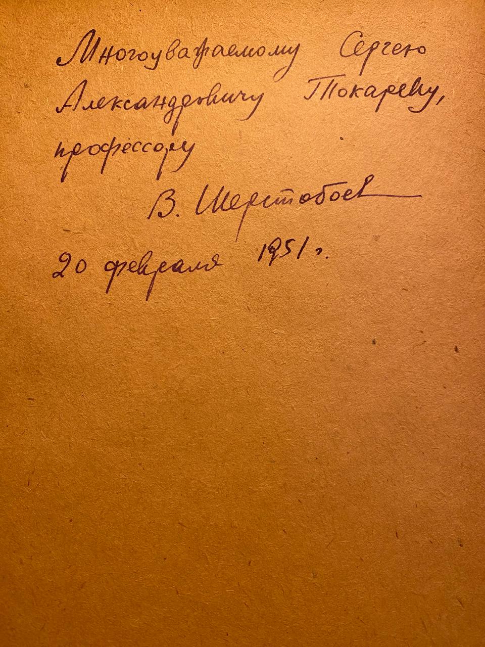 Первый том великой "Илимской пашни" В.Н. Шерстобоева с автографом самого Вадима Николаевича адресованным Сергею Александровичу Токареву - главе советской этнографии.