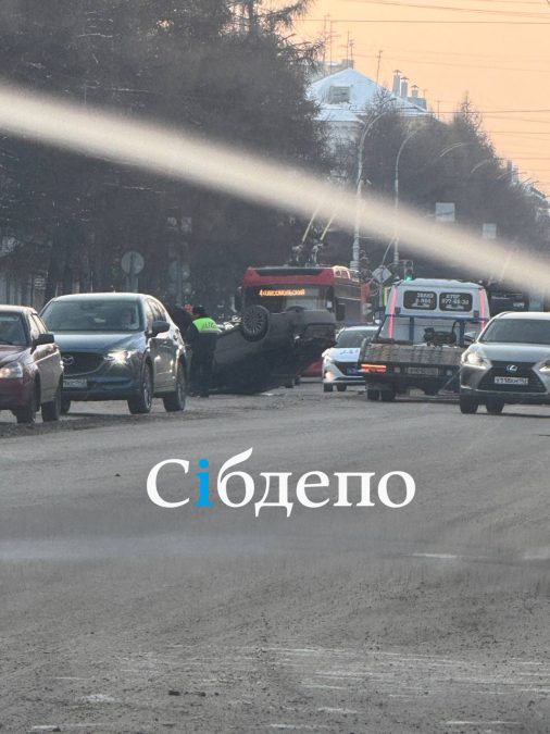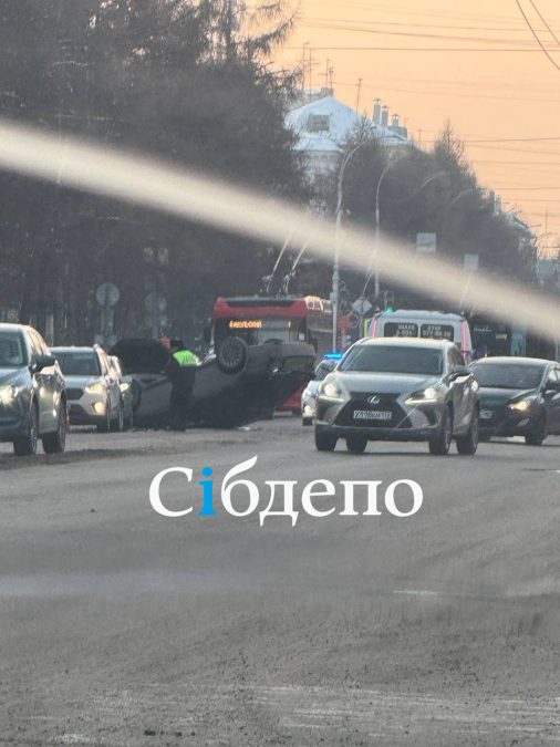 В Кемерове случилось ДТП, в котором перевернулся легковой автомобиль. Кадрами с места происшествия поделился читатель Сибдепо.