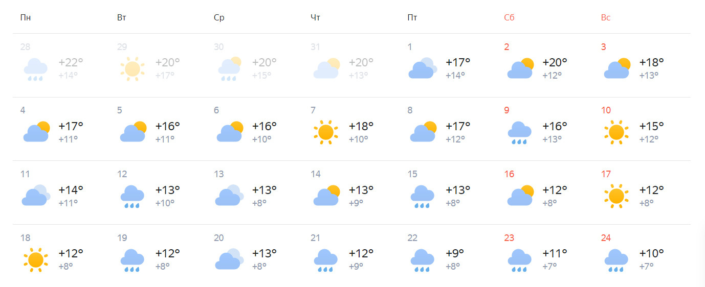 На сервисе «Раблер/погода», опубликовали самый позитивный прогноз на 1 сентября — около +28 градусов днем, но ощущаться будет как +26 градусов. Сила ветра, согласно данным, составит 4 м/с.