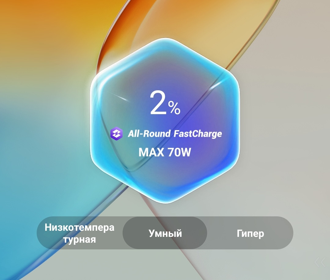 Наконец, в коробке со смартфоном находится и 70-ваттный адаптер питания для проводной зарядки. Как по мне, с этим в компании немного перемудрили, внедрив три программных режима скорости (как на скриншоте ниже).