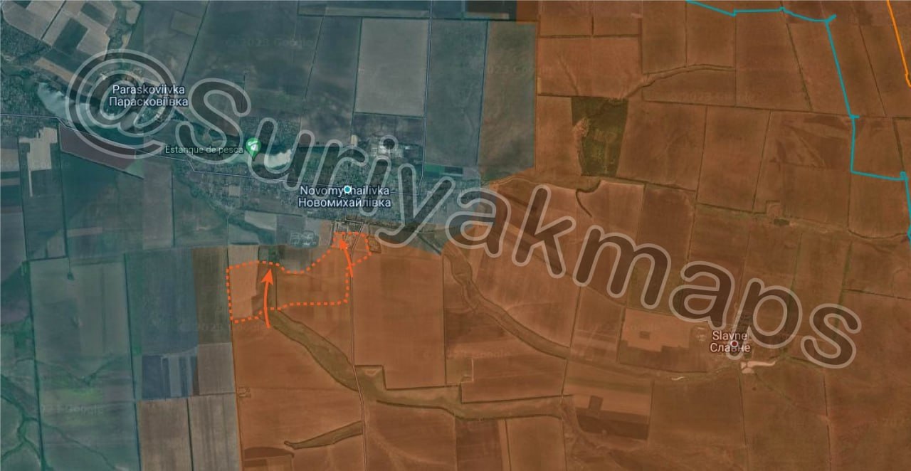 2. Ситуация к юго-западу от Донецка: за последние часы российская армия продвинулась с юга к Новомихайловке.