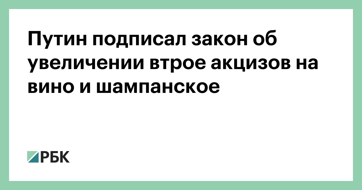 Президент России Владимир Путин подписал закон об увеличении акцизных ставок на вино и шампанское с 2024 года. Соответствующий документ опубликован на официальном портале правовой информации.