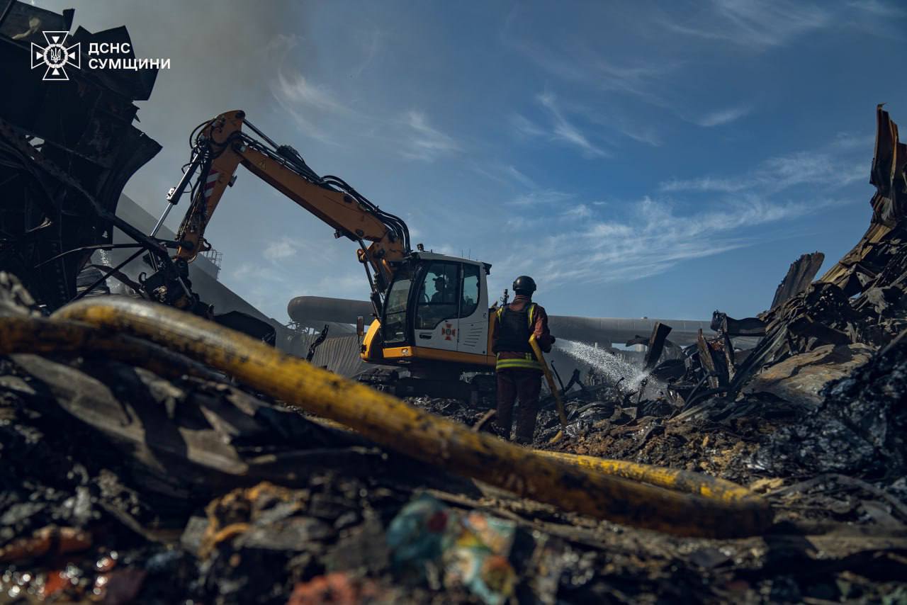 В Сумах ликвидировали масштабный пожар, нанесенный вражеским авиационным ударом