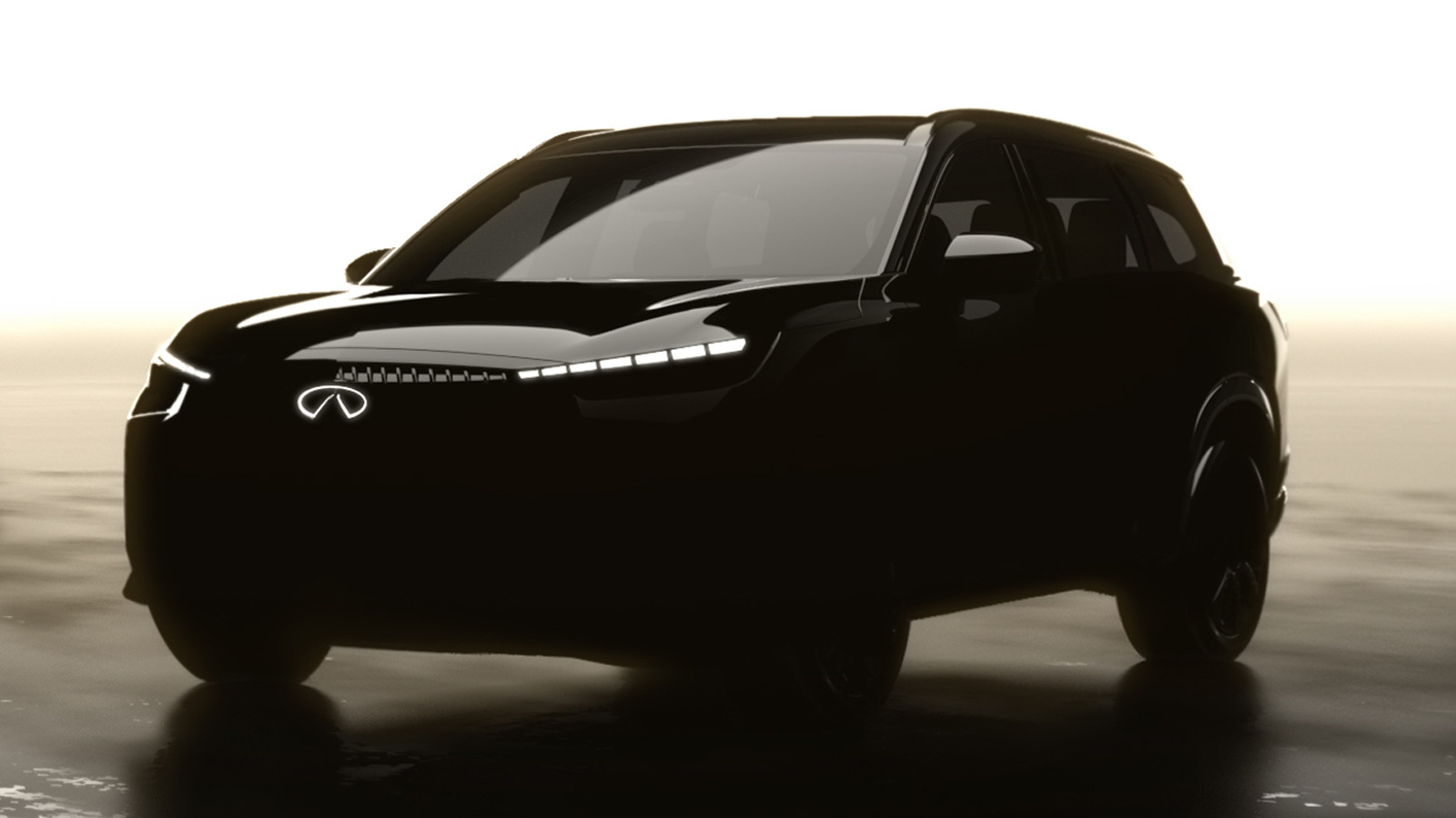 Ещё одна новинка на данный момент анонсирована только для США и Канады, её появление намечено на 2028 финансовый год. Речь идёт о полностью электрическом кросовере, имя которого компания пока держит в секрете. Известно, что он будет создан по мотивам концепта Vision QXe, который был показан на тизере в октябре 2023-го. Сейчас на будущую новинку можно посмотреть на ещё одном тизере: в отличие от концепта, у нового прототипа нет светящихся «оквадраченных» элементов в нижней части переднего бампера, однако оптика оформлена схожим образом.
