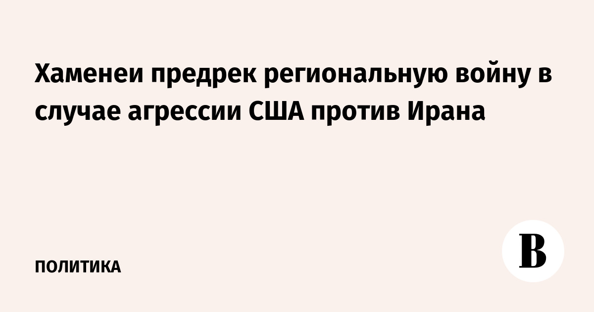 Возможная военная агрессия США против Ирана не останется двусторонним конфликтом и неизбежно перерастет в полномасштабную региональную войну. Об этом заявил верховный лидер Исламской Республики Али Хаменеи. Его слова приводит агентство Reuters.