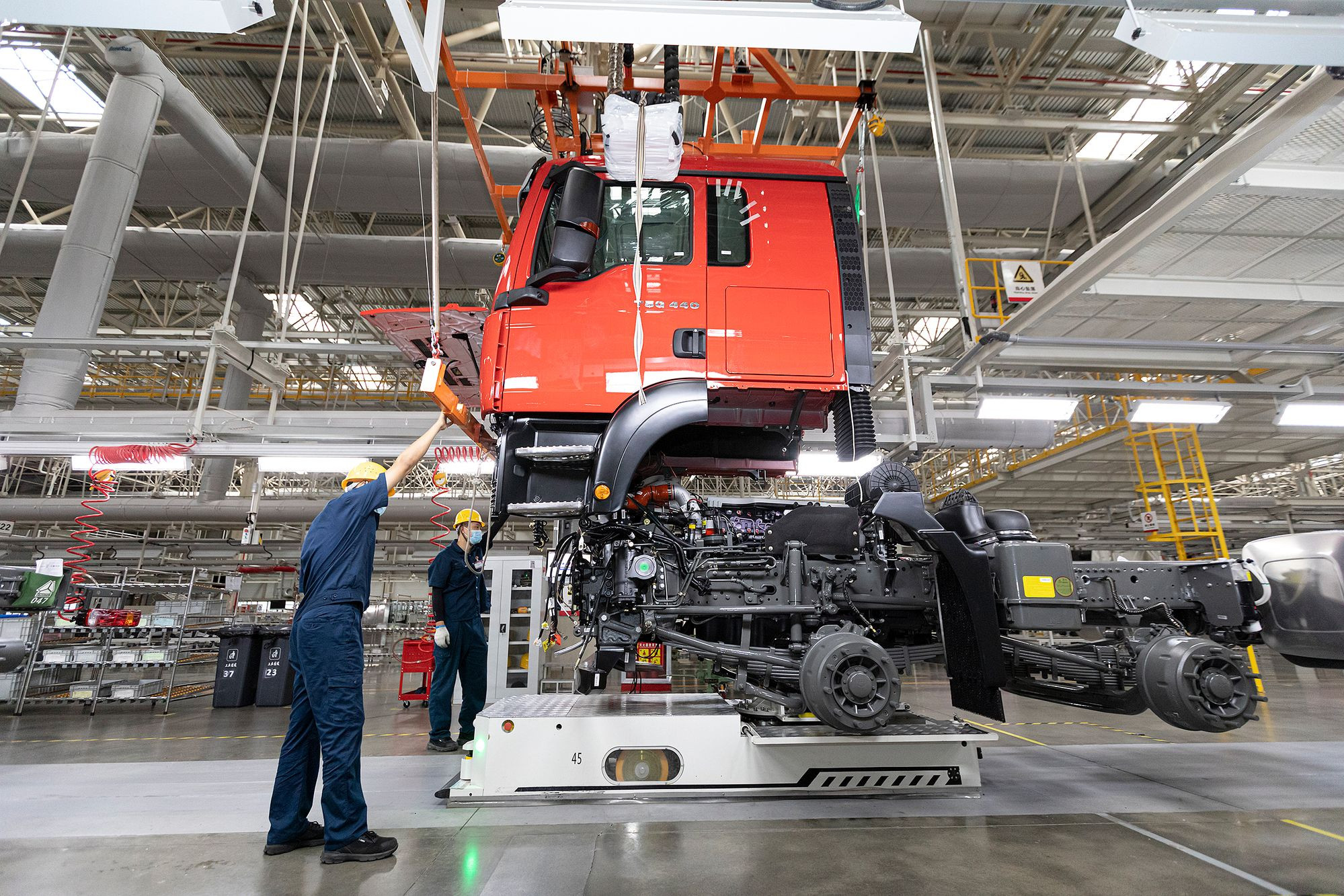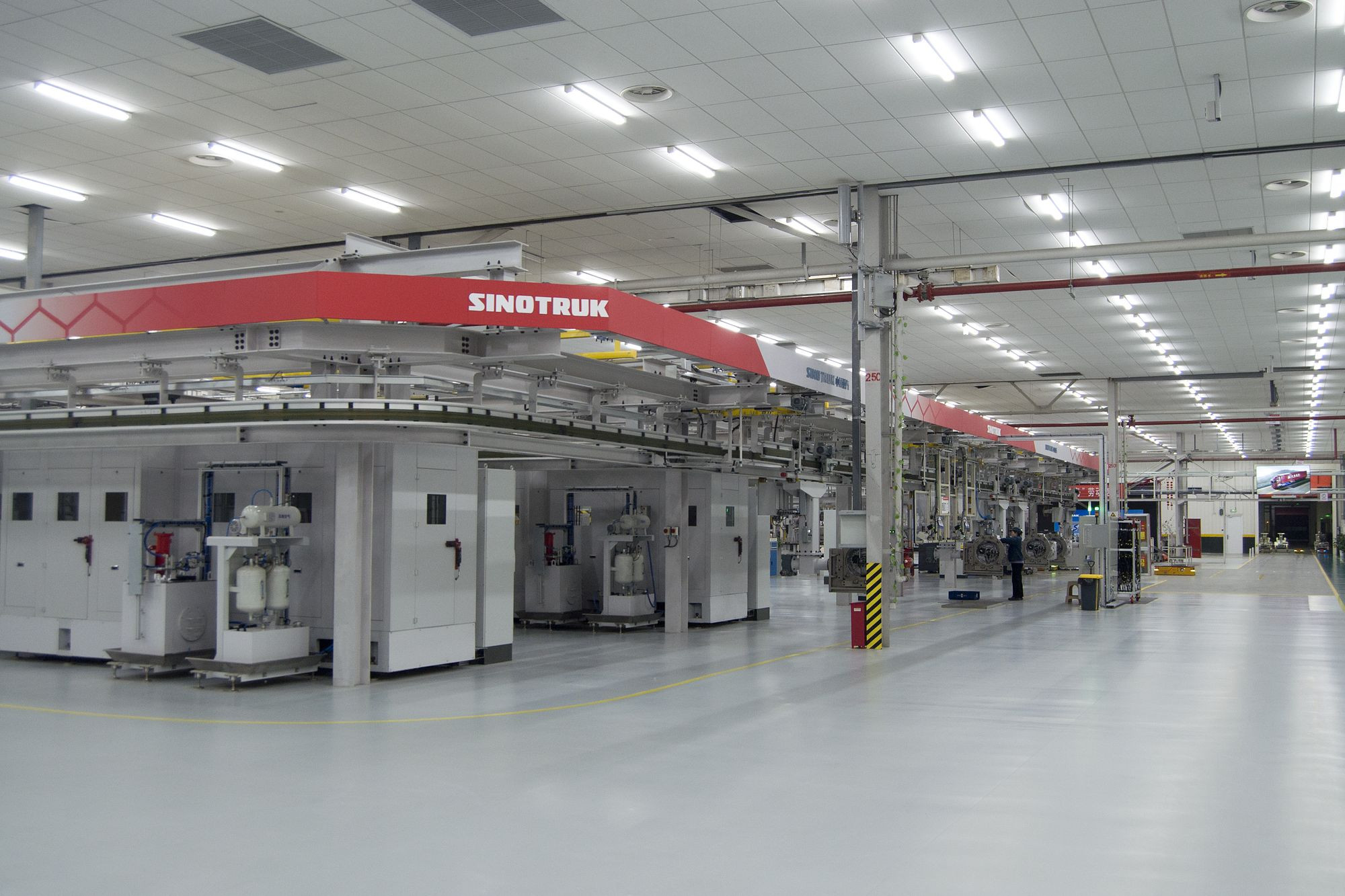 В сознании некоторых наших соотечественников автомобильный завод – это шумное место, где под грохот станков по лужам солярки и масла бродят суровые мужики в грязных робах. Может быть, где-то нечто подобное и можно увидеть, но только не на сборочном заводе Sitrak. Трудно представить себе более современное предприятие, и ещё труднее найти в его цехах людей: на площади в 504 тыс. квадратных метров работают 289 роботов. Они тут выполняют практически всю работу по сборке, литью, сварке, штамповке, покраске, прокатке и лазерной резке. Если постараться, можно найти и человека, но люди тут в основном нужны только для того, чтобы следить за роботами и контролировать результат их работы.