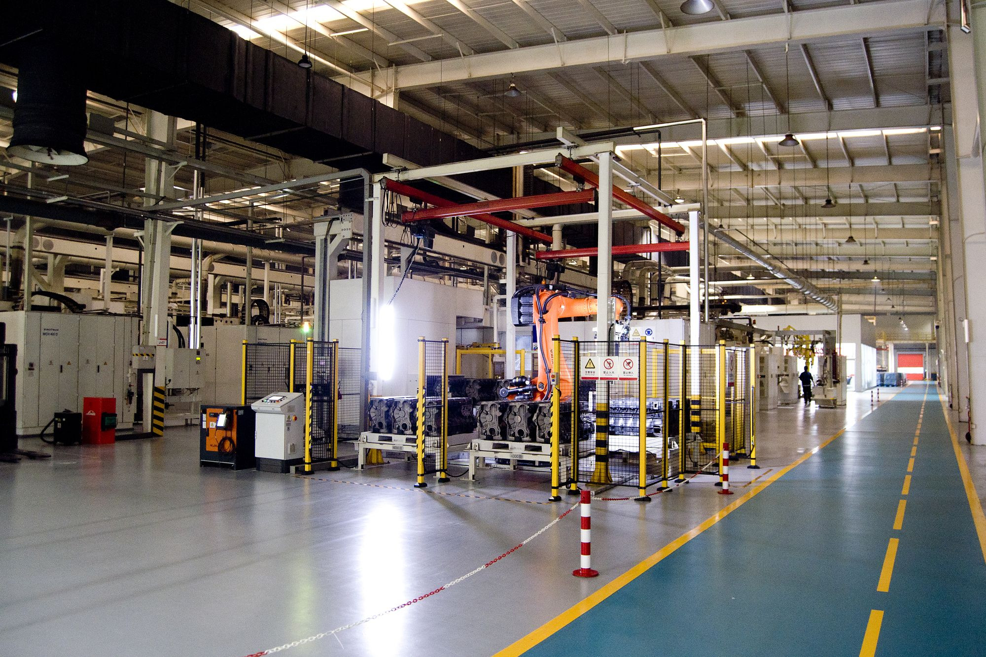 Так как на этом заводе производят сборку, моторы, коробки и мосты приходят на него уже готовыми. Их собирают на другом заводе в том же Цзинане. Снимать на обоих заводах всё подряд нам, к сожалению, запретили, поэтому поверьте на слово: он такой же безлюдный, и если наша группа журналистов кому и мешала, то только роботам-тележкам AGV, которые развозят по заводу комплектующие. Если у них на пути оказывался кто-то из нашей группы, тележки останавливались и ждали, когда им уступят дорогу. Иногда их даже становилось жалко: казалось, сейчас они начнут вздыхать и топтаться от обиды на то, что им мешают работать. И уступать им дорогу приходилось очень часто: их на этом заводе 417 штук.