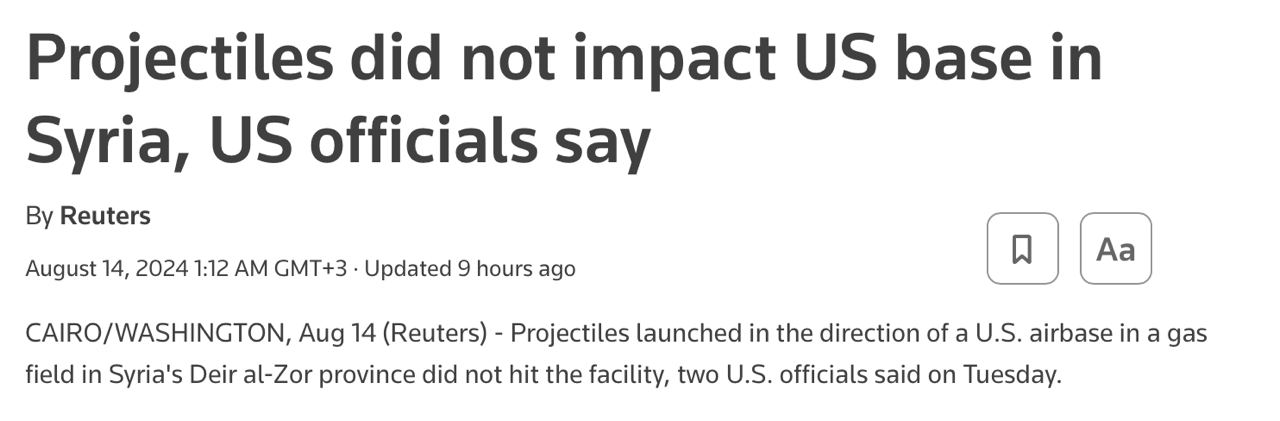 ❗️ Ранее поддерживаемые Ираном вооруженные формирования атаковали американскую базу Хараб Аль-Джир в сирийской провинции Хасака, в результате были ранены восемь военных.