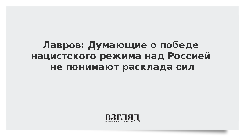 Все те, кто думают о победе нацистского режима над Россией, ничего не смыслят в политике и не понимают настоящего расклада сил, заявил глава МИД Сергей Лавров.