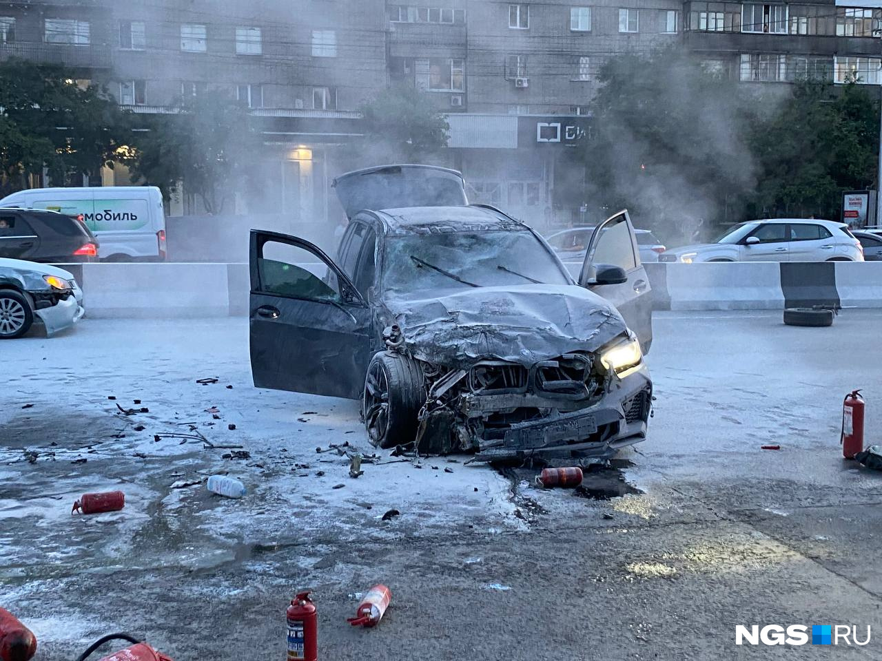 Очевидно, одна из самых скандальных аварий года произошла вечером 13 июля. Тонированный BMW X5 M-Competition без номеров промчался на сумасшедшей скорости по Красному проспекту протаранил 7 автомобилей, перевернулся и загорелся. По данным правоохранительных органов, в результате незначительно пострадали два человека. С места ДТП сбежали два человека, находившихся в салоне. 17 июля предполагаемый виновник аварии сам явился в полицию.