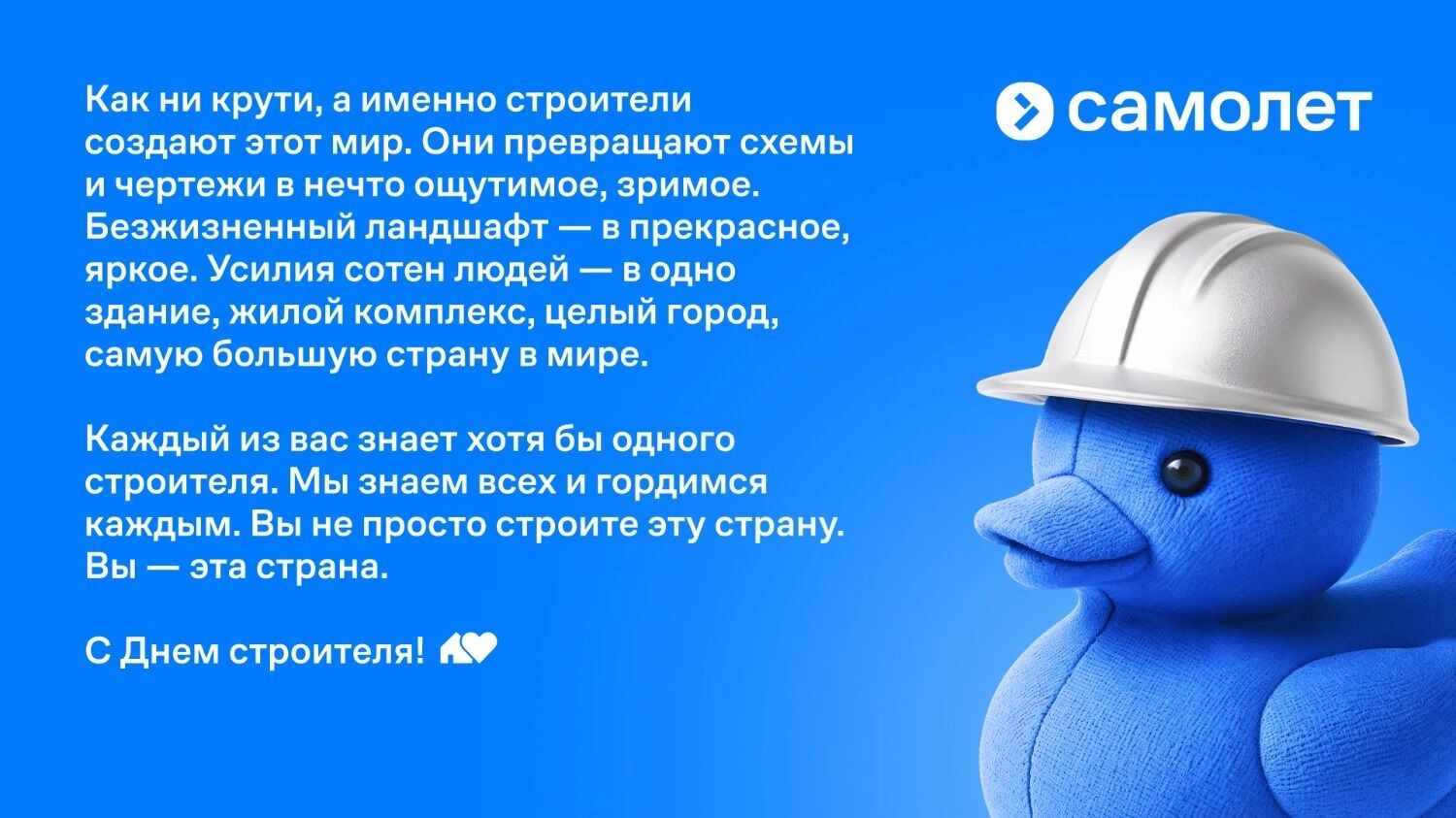 Группа компаний «Самолет» присоединяется к поздравлениям представителей строительной отрасли.