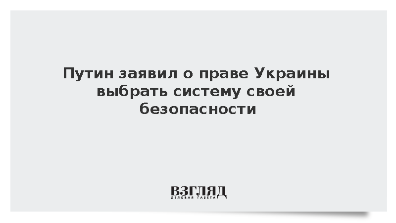Путин подчеркнул: «Я согласен с теми, кто считает, что каждая страна имеет право сама выбирать систему обеспечения своей безопасности. Это касается всех стран, в том числе и Украины. Но это также означает, что безопасность одной страны не может быть обеспечена за счет безопасности другой страны, в данном случае Российской Федерации».