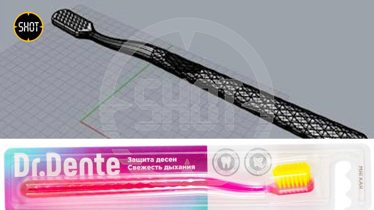 Как рассказал нам дизайнер Александр Белов, ещё много лет назад он задумал сделать такую рукоятку зубной щётки, которой не будет равных, — чтобы и стильно, и удобно держать в руке. На разработку ушёл год, ещё столько же, чтобы получить патент. В 2021 году наконец пришёл ответ — "таких рукояток больше нет, права только ваши". Тогда же Александр нашёл фирму-производителя и заключил договор на производство щёток. Однако в этом году дизайнер наткнулся на своё творение в одной из аптек "Планета здоровья", сеть принадлежит режиссёру Андрею Кончаловскому (25% доля) и его товарищу-бизнесмену.