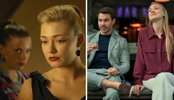 Слева — кадр из фильма «Стиляги», справа — из сериала «Беспринципные».