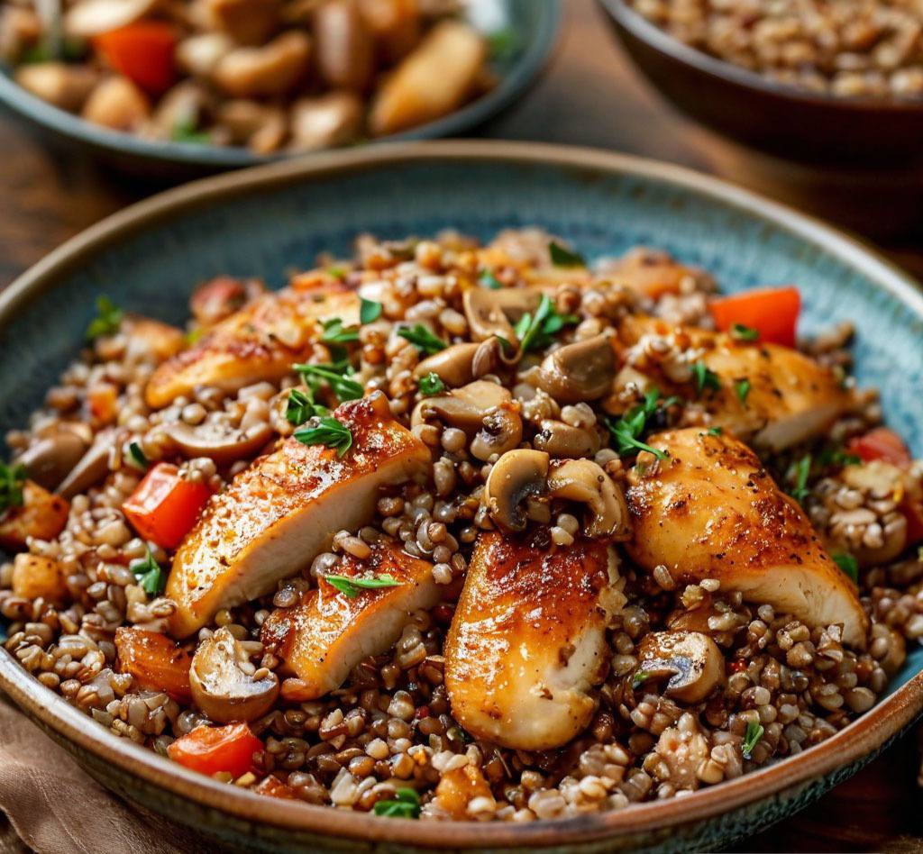 3. Гречку промыть и добавить к овощам. Залить гречку водой так, чтоб она ее покрывала примерно на 5 мм, посолить по вкусу. Варить до готовности.