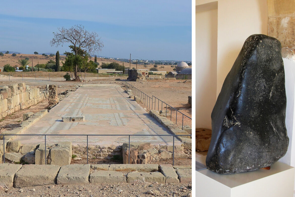 Согласно второму мифу, рождение Афродиты произошло рядом с кипрским городом Пафос. На много веков он стал общегреческим центром поклонения богине любви. Священная роща и алтарь Афродиты Пафии упоминались еще в поэме Гомера «Одиссея», созданной в VIII веке до нашей эры. Однако когда именно был построен храм, доподлинно неизвестно. Сегодня от него осталось несколько десятков известняковых блоков, окружающих прямоугольную площадку размером 20 x 50 метров.
