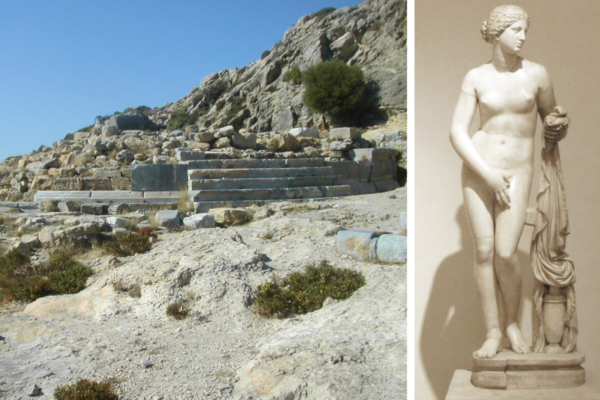 Древний город Книд располагался на полуострове в юго-западной части современной территории Турции. Он был еще одним значимым культовым местом Афродиты, и приблизительно в IV веке до нашей эры здесь был построен дорический храм. Его отличительной особенностью была округлая моноптерная конструкция без стен. Это было нетипично, так как величественные колонны дорического ордера чаще всего украшали строгие прямоугольные периптеры. До настоящего момента от древнего храма остались фрагменты основания и несколько ступеней лестницы центрального входа.