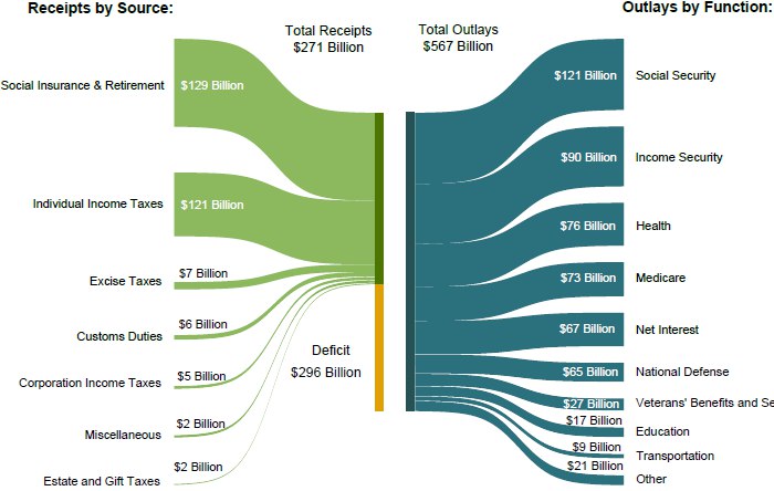 Доходы федерального бюджета США в феврале составили $271 млрд, а расходы — $567 млрд. Таким образом Америка тратит вдвое больше, чем зарабатывает, сообщил Минфин США.