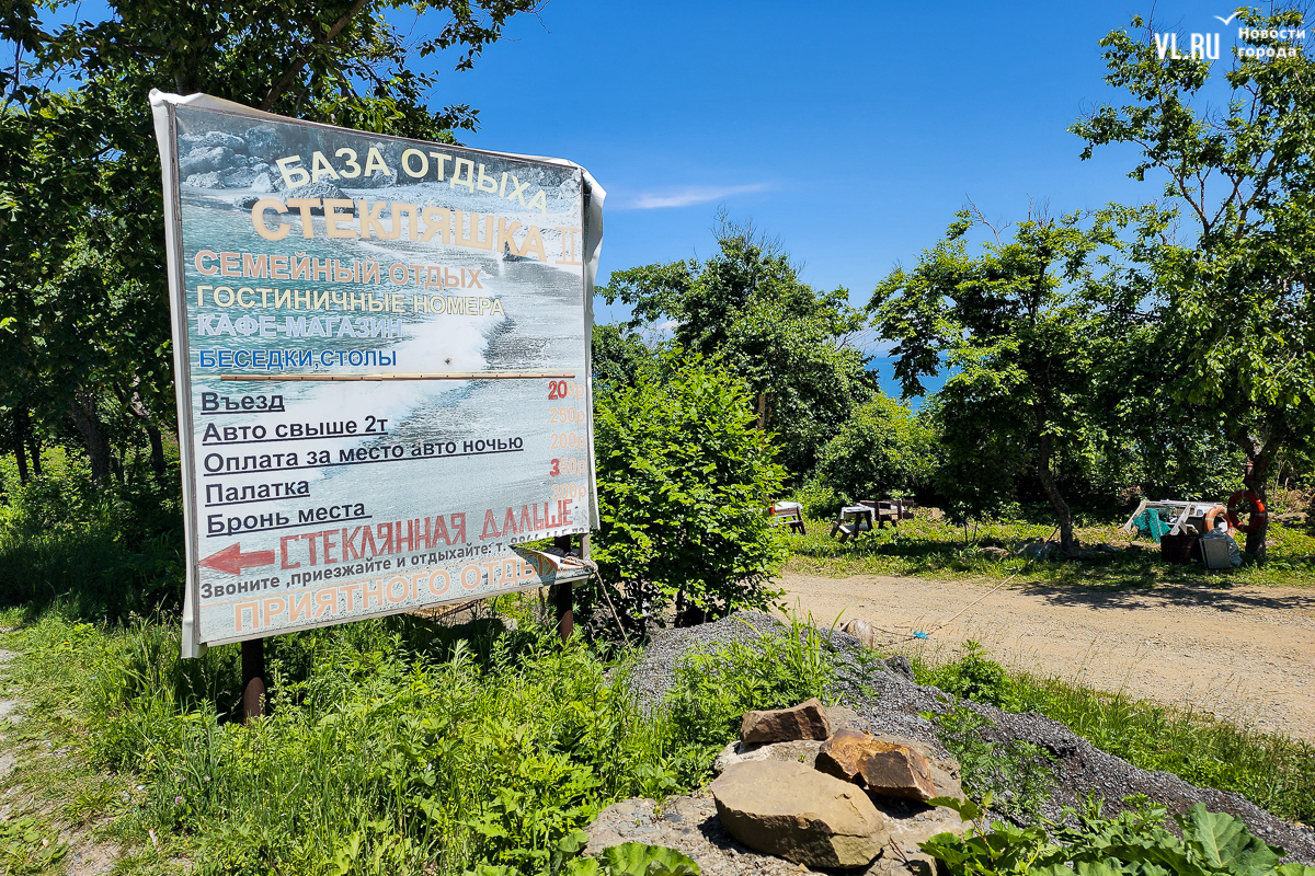 В прошлом году с пляжа в бухте Стеклянной убрали незаконно установленное кафе и беседки – вместе с ними исчезли душ, туалеты и мусорные баки. Сейчас на очищенной от нелегальных сооружений территории растут горы мусора, а отдыхающие вынуждены справлять нужду, где придётся. На состояние уникального пляжа жалуются и жители Приморья, и гости из других регионов (и даже стран), которые приезжают сюда запастись сувенирами – похожими на сверкающую гальку кусочками стекла.