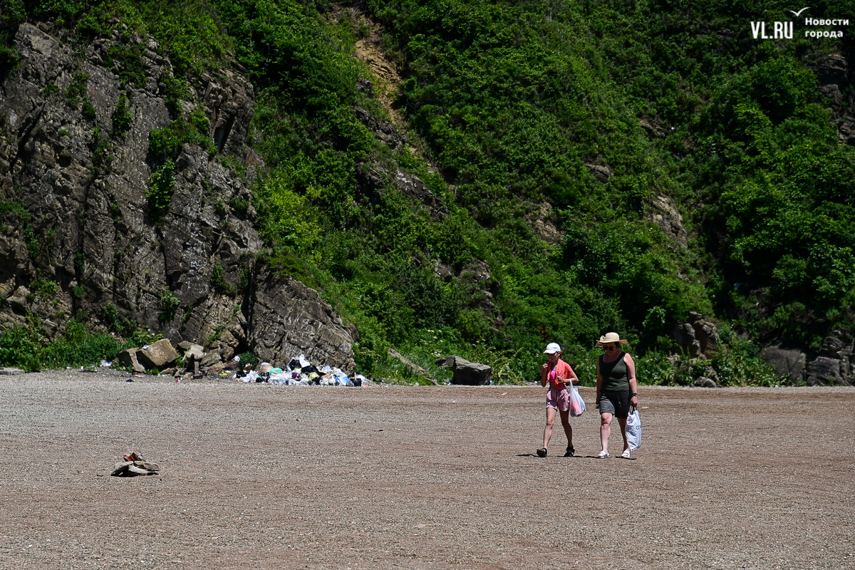 Две девушки приехали в Приморье из Москвы. О пляже узнали в интернете. Они уже успели побывать на Токарёвской кошке, а сейчас приехали сюда, взять на память несколько цветных стёклышек. Грязь и мусор туристки встретили в разных частях Владивостока, но в разной степени.