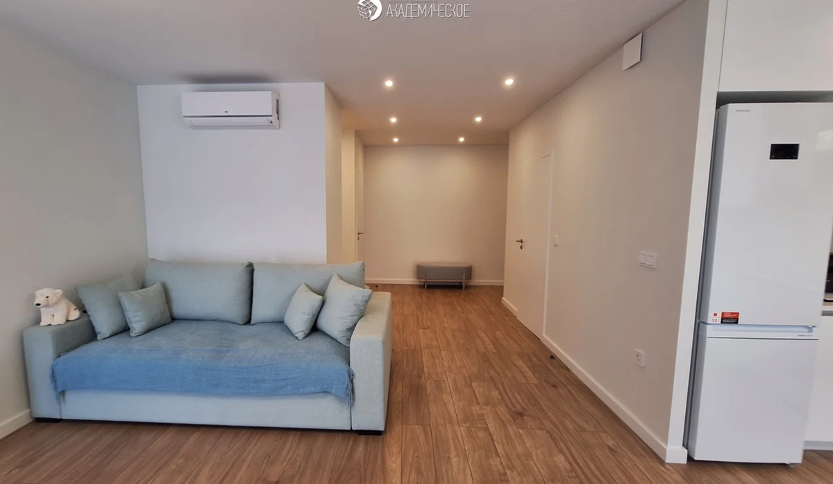 Еще одна студия на 42 кв. м продается за $139 000 в эквиваленте. Состоит из кухни-гостиной и совмещенного санузла. Отделка базовая, но аккуратная. Выдержана в нейтральных тонах — подойдет тем, кто не любит визуальный шум. Стены окрашены, на полу — ламинат, а в мокрых зонах — итальянская плитка. Санузел укомплектован турецкой сантехникой.
