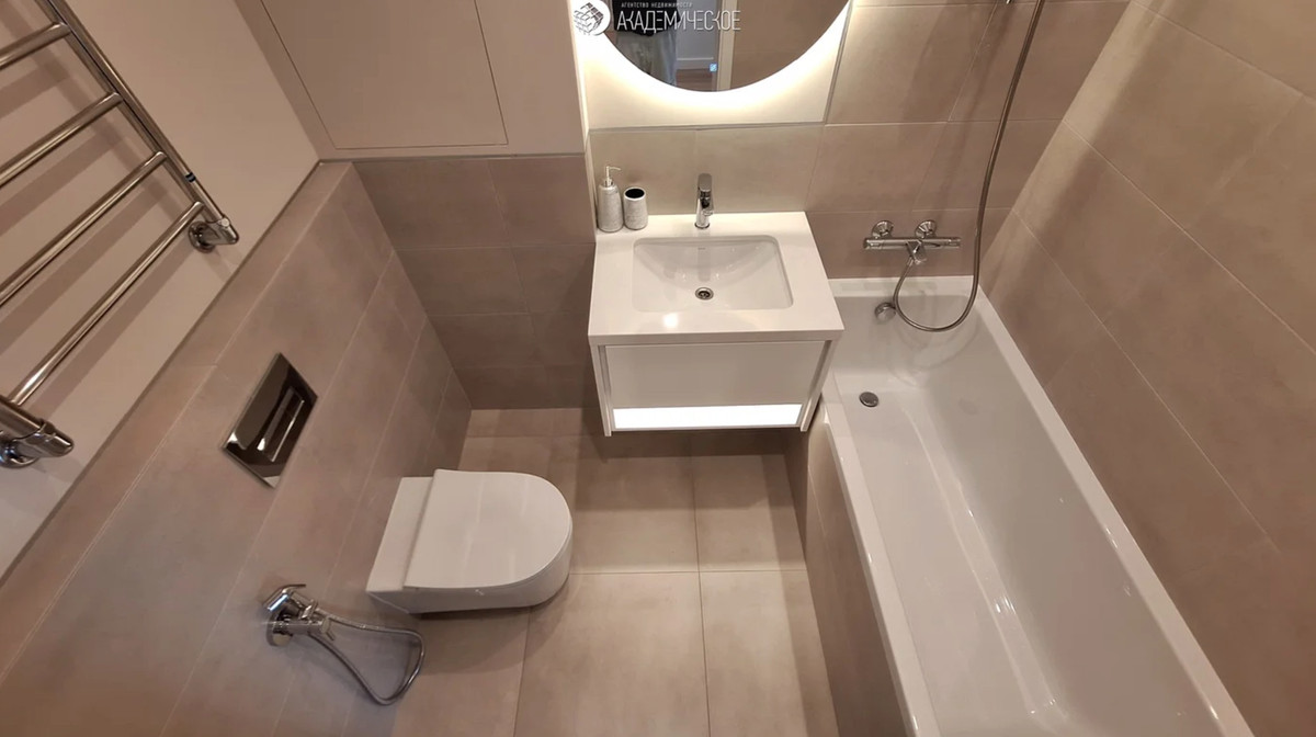 Последний вариант — двушка с чистовой отделкой. Занимает 56 «квадратов» и включает в себя кухню-гостиную, отдельную спальню, два санузла и постирочную.
