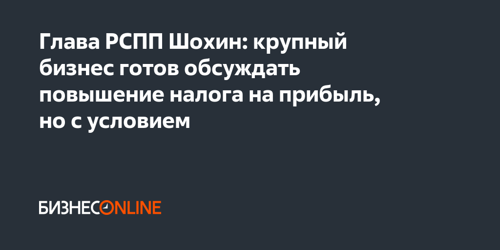 «Мы готовы обсуждать с правительством вопросы повышения налога на прибыль. При условии, что будут внятные, четкие и достаточно, может быть, системные инвестиционные налоговые вычеты и по действующим механизмам типа СЗПК (соглашения о защите и поощрении капиталовложений — прим. ред.). <…> Мы за то, чтобы была понятная конструкция с понятными вычетами, которые стимулируют инвестиции. Нам нужен инвестиционный рывок», — заявил Шохин.