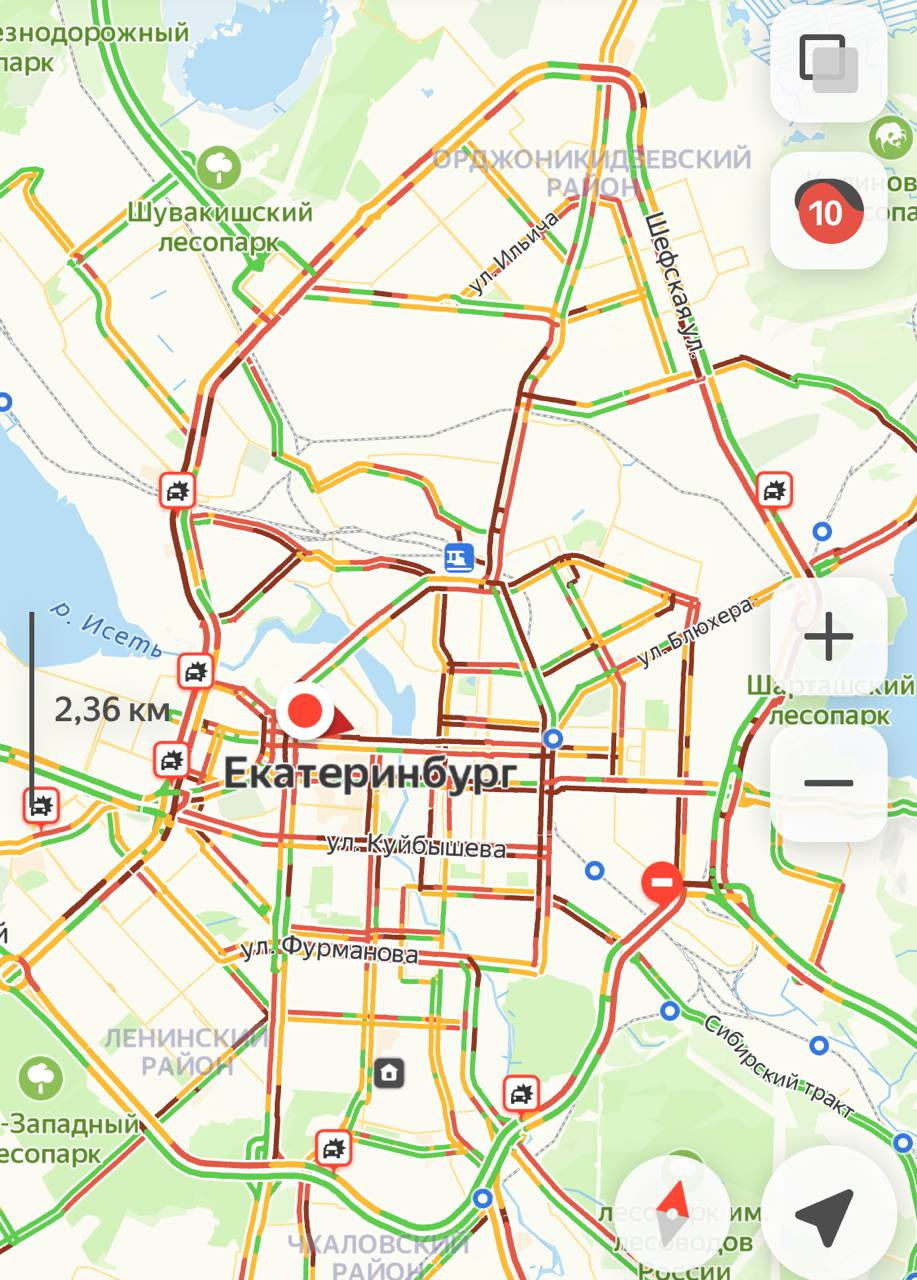 Вечером 4 декабря Екатеринбург застыл в 10-балльных пробках. Сильный снегопад зимой, видимо, стал неожиданностью как для водителей, так и для коммунальных служб. Судя по картам, в городе произошло с десяток аварий.