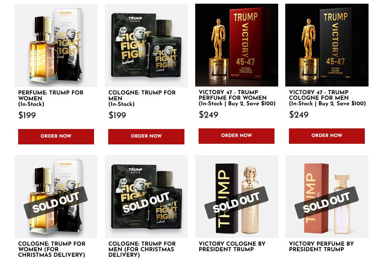 В линейку вошли два аромата, вдохновлённые его победами на президентских выборах 2016 и 2024 годов. Коллекция получила название «Victory 45–47», что отсылает к его 45-му и предполагаемому 47-му срокам на посту президента США.