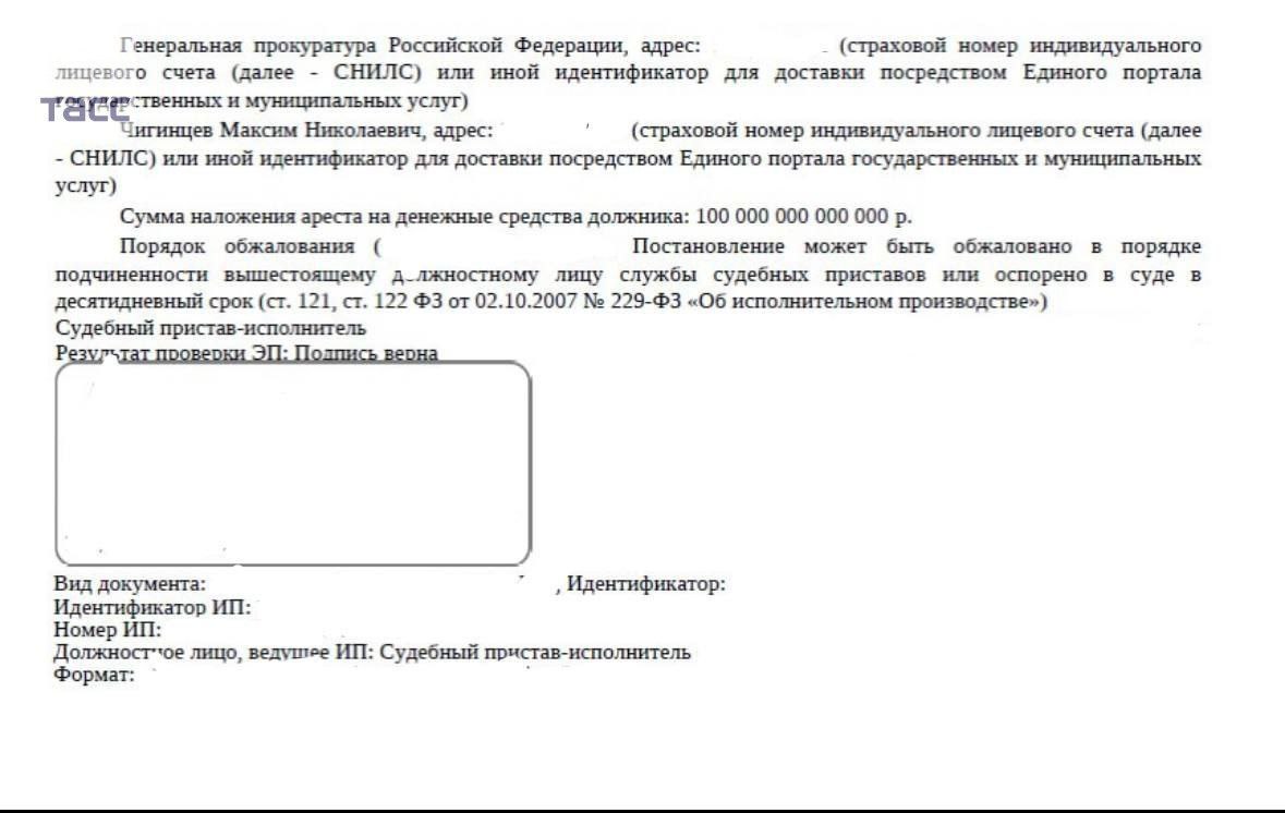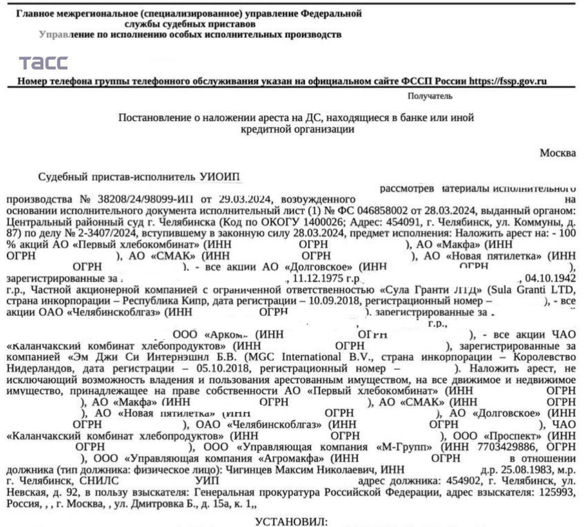 ТАСС опубликовал документ Федеральной службы судебных приставов, согласно которому по иску об изъятии «Макфы» в пользу государства арестованы активы родственников владельцев компании на сумму 100 трлн руб. Указанная сумма превышает рублевую денежную массу в обращении (агрегат М2): по данным ЦБ, на 1 марта она составляла 99,4 трлн руб.